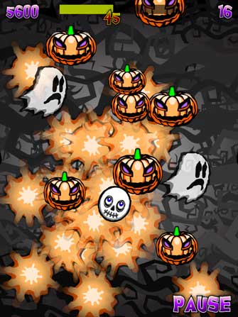 The more pumpkins you blast, the more points you score! Score double, triple, quadruple and more with combo explosions! Get extra points with critical shots near the top and bottom of the screen. Earn bonus points by covering large areas with pumpkin explosions!